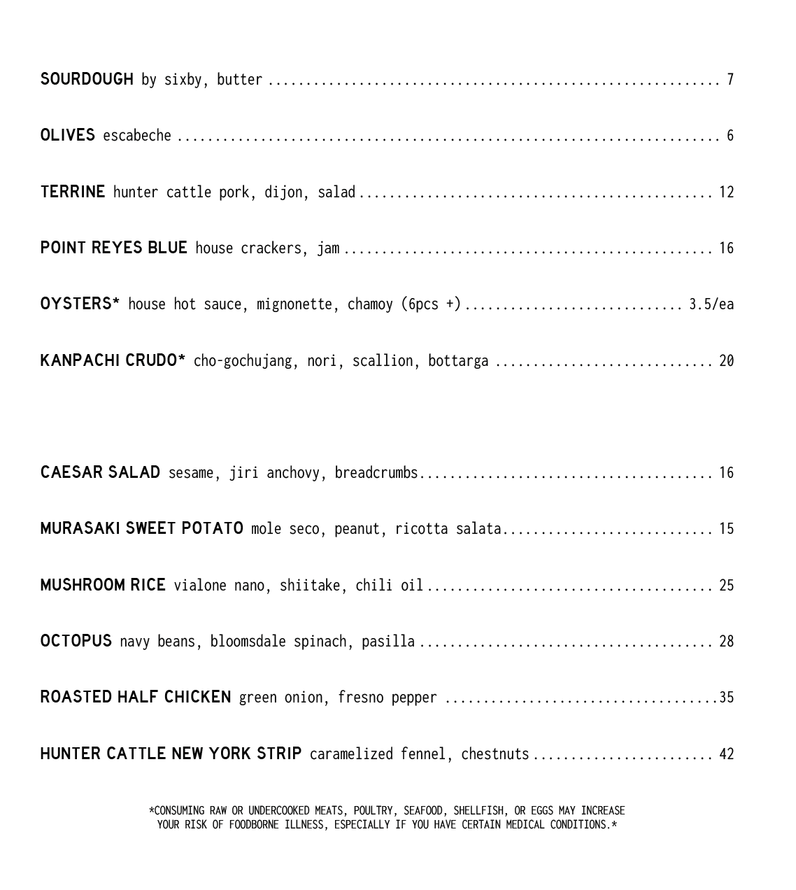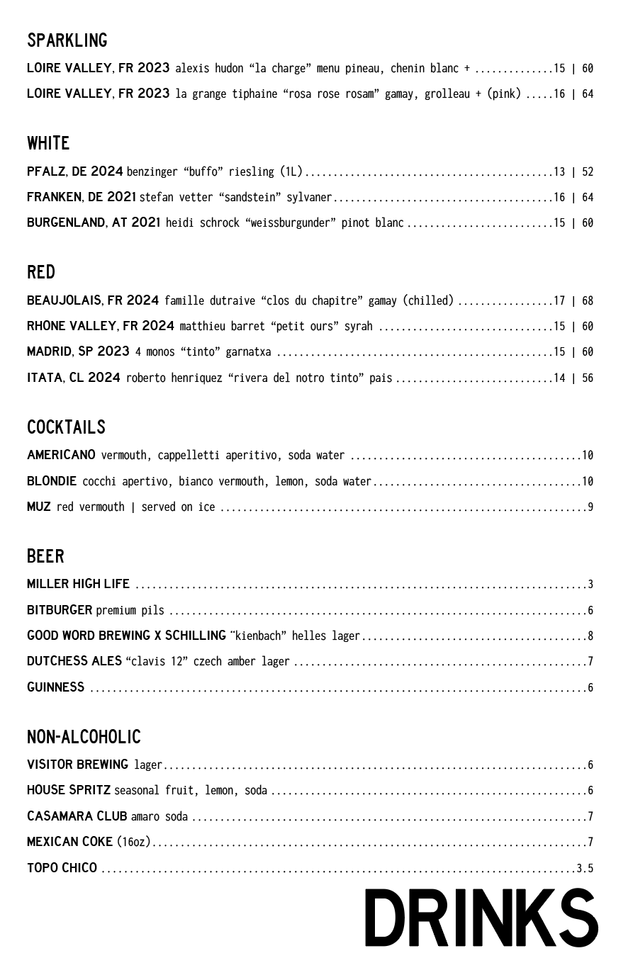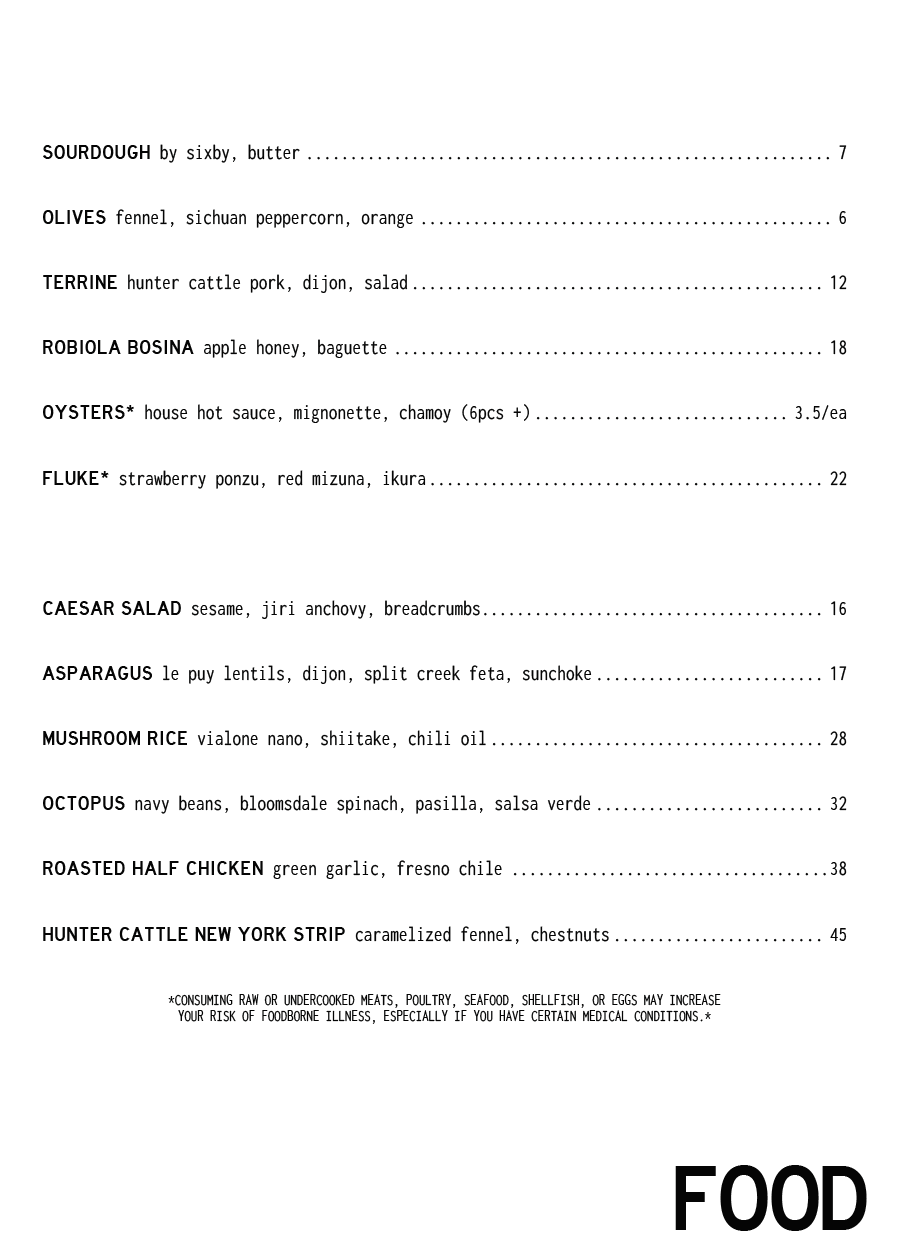 our menus change often depending on what is available and in season from our farmers. we are unable to update the menu every time it changes but you can view the format below.